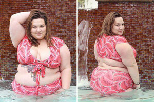 据英国媒体报道,近日一英国女胖子在她的博客上公布了一组自己身穿比基尼的照片,此举意在号召胖人们反对媒体的身材歧视。